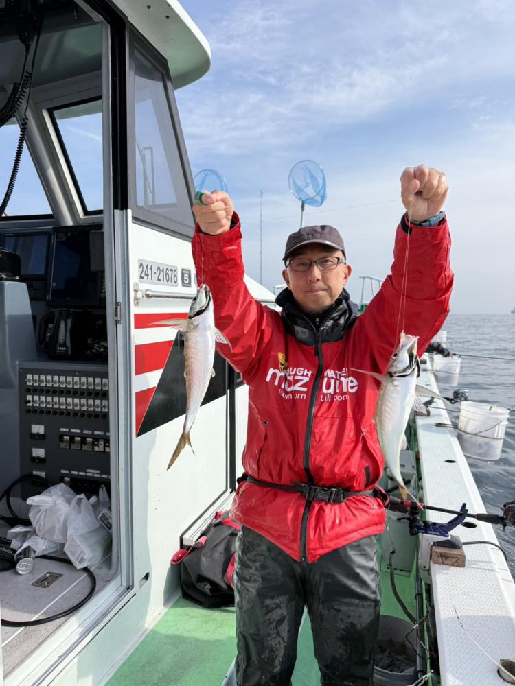 1投目から型を見れて当たりも良くサイズ感も良かったですよ!次第に速い潮が来てしまい昨日と同様に少しでも浅い方と思い移動したら成功でしたね!サイズも変わらず帰りまで釣れてくれました!スソの方は船酔いでしたね。予報通り風が強くなってきたので30分早めに上がりました!明日は予報悪くお休みします!今日も1日ありがとうございました!